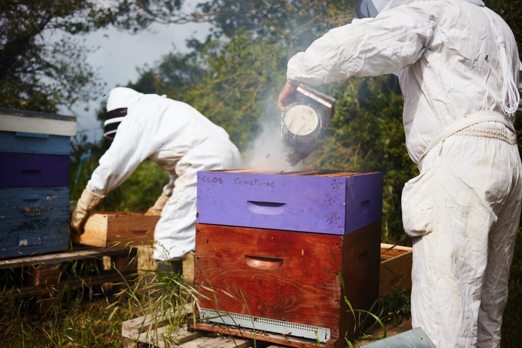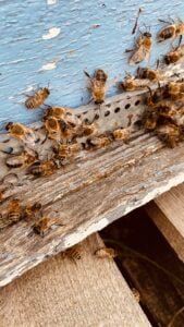 Nos premiers pas dans l’apiculture en 2016 se sont faits de manière aussi surprenante que nos débuts dans l’élevage de poules. Un ami m’a simplement proposé de récupérer 3 essaims d’abeilles dont il ne tenait plus à s’occuper. Après une formation auprès du syndicat de l’abeille de la Vienne et au conseil d’un ami apiculteur, nous effectuons 2 à 3 extractions de miel par an.