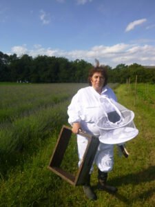 En 2015, en souvenir de la ville de Nice où j’ai vécu plus de 30 ans, nous avons planté 1100 pieds de lavandin et 50 rosiers de Damas. Dès l’année suivante, nous avons fait notre première distillation produisant de l’huile essentielle de lavande et des eaux florales de lavande et de rose, ces fragrances si chères à mon cœur.